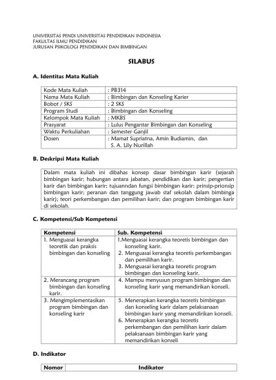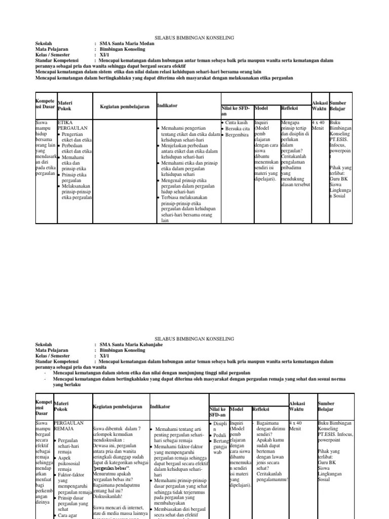 Identitas mata kuliah nama mata kuliah : Silabus pengantar bimbingan dan konseling abk. Silabus menjadi sebuah perangkat pembelajaran yang sangat penting bagi seorang guru termasuk guru bimbingan konseling (bk). Tanpa ijin tertulis dari fakultas ilmu pendidikan. Berikut ini berbagi ilmu bagikan contoh silabus bk ma/sma kelas xi.